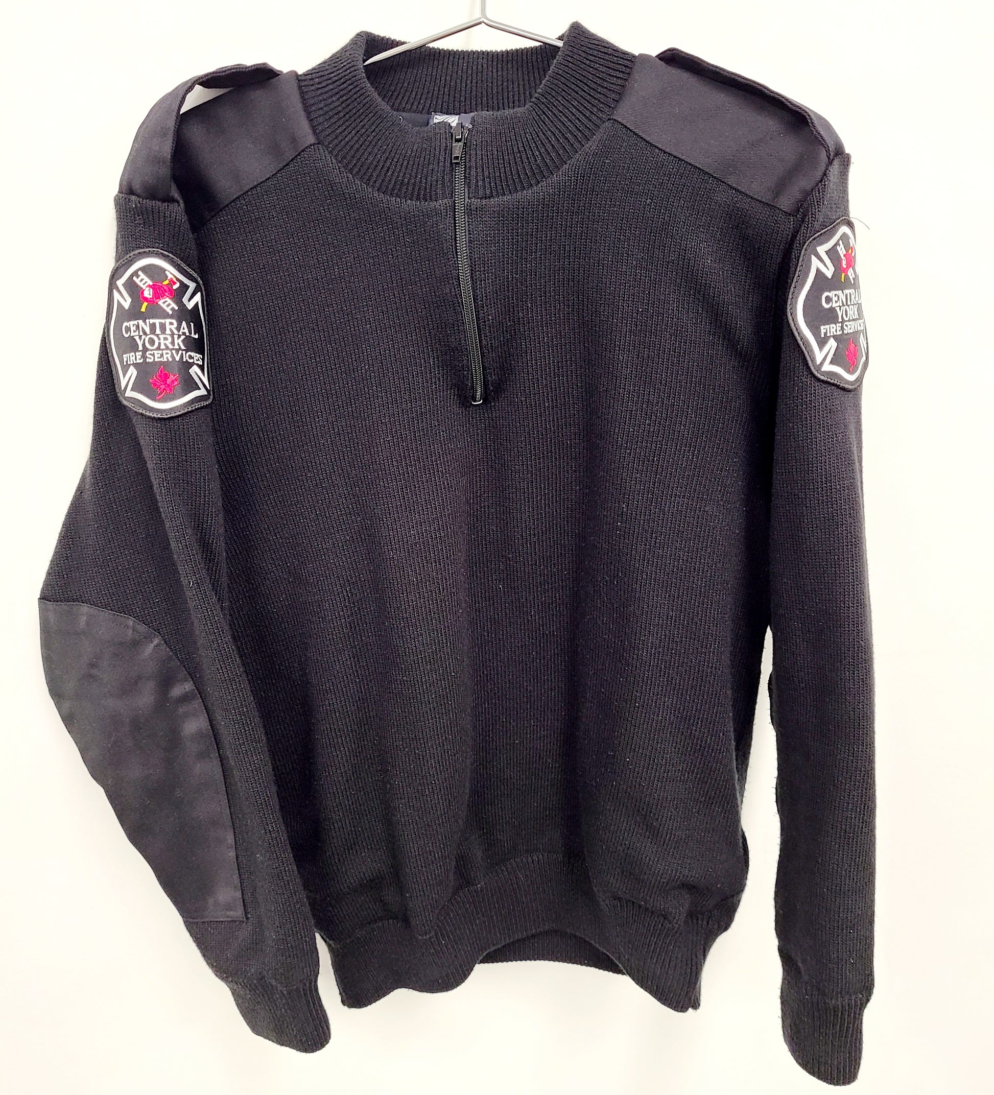 1/4 Zip Military Lined Sweater - Black - Gold Crest